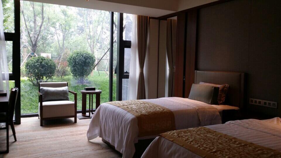 酒店精心打造297间风格各异的豪华客房,顶层特设总统套房及行政酒廊,可同时接待450人入住;包括高级双床房、高级大床间、豪华双床房、商务大床房、豪华套间、行政套房、总统套房、别墅等。客房设施完备,3D大屏幕42寸LED电视/卫星影视频道,宽带上网服务满足您办公娱乐的需求。房间还配有独立中央空调、洗手间干湿分区,坐浴淋浴分开、房间全湖景露台花园设计诠释了酒店的最新服务理念,酒店内环境优美,在房间内便可俯瞰雁栖湖景,欣赏庭院绿化。