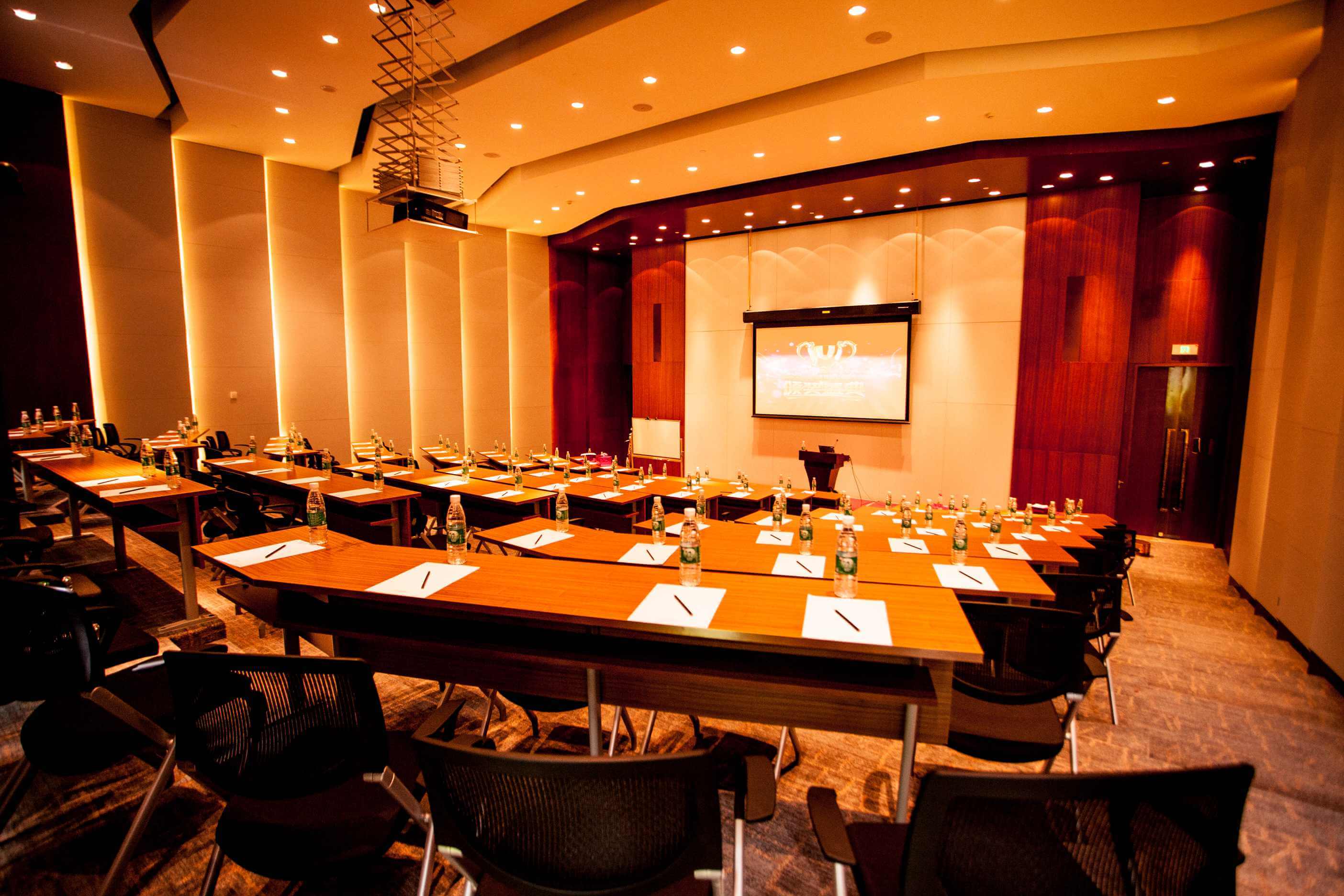 会议设施先进齐全,设有500平方米多功能厅和不同规格的会议室10个,最大会议室可容纳400人开会,适合举办各类的会议活动。豪华的贵宾接见厅是高端接待活动以及重要会见的最佳选择。更有专业的会议顾问为您提供专业的会议策划和顾问服务,让参会者轻松体验完美的会议服务。